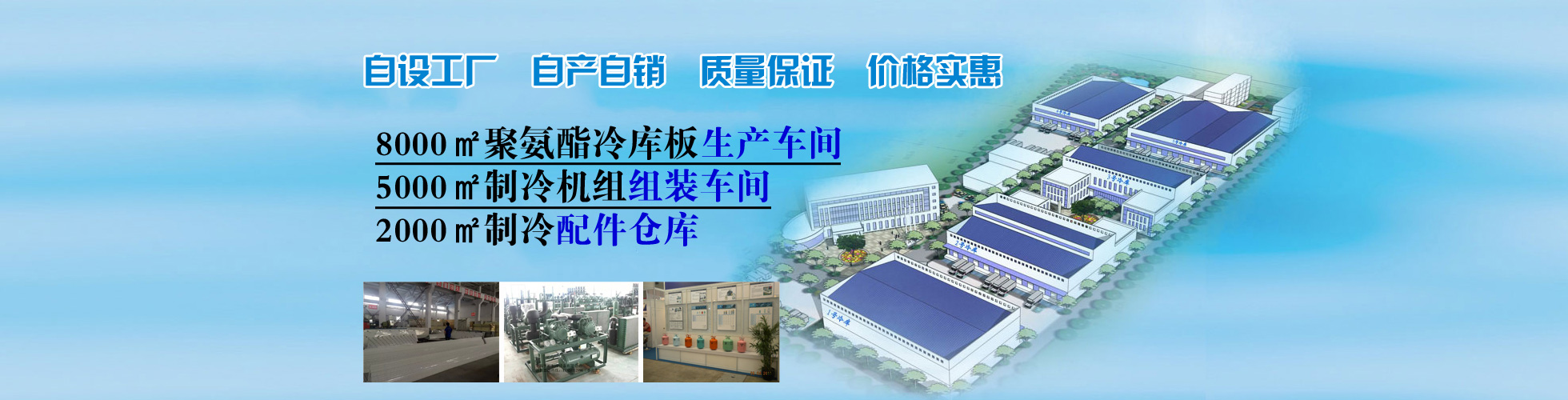 自設(shè)8000平方聚氨酯生產(chǎn)車間、5000平方制冷機(jī)組組裝車間真正做到自產(chǎn)自銷、讓利客戶。